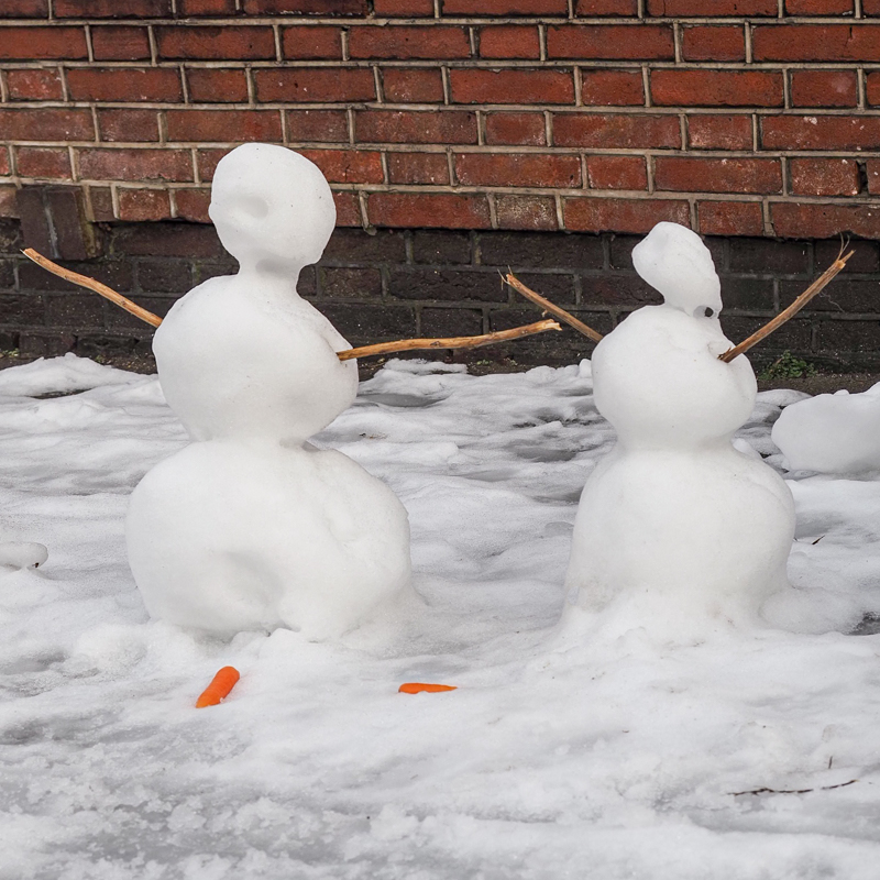 Of kleinere sneeuwmensjes, maar die zijn kwetsbaarder voor omvallen of dooi,