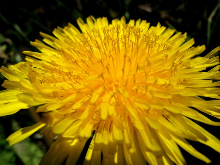 | De “schitterende zonnediade” uit Heer Bommel: toch een veel passender naam dan paardenbloem? Zoveel bloemen in een ‘hoofdje’ (elk gele lint)