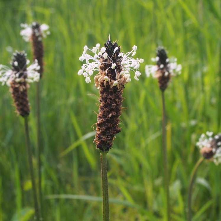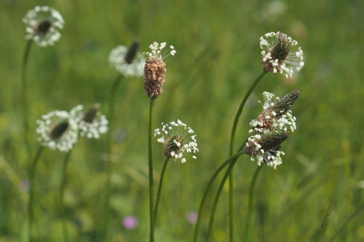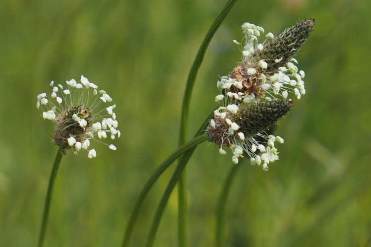 | Het bloeien van weegbree: vroeger noemde ik ze heiligenkransjes. Die wijde ring van meeldraden Langzaam schuift de rijpende krans omhoog, |