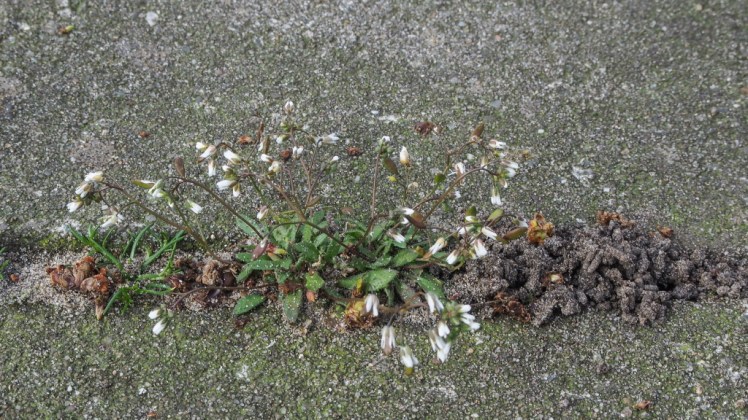 Bladstelen zo rechtop? Zo zijn ze niet gevallen, dat is regenwormenwerk. Half verteerd spul je gang intrekken, je door de grond heen eten en mooie humusrijke aarde uitpoepen: wormenhoopjes. Zelfs onder stoeptegels werken ze!! |