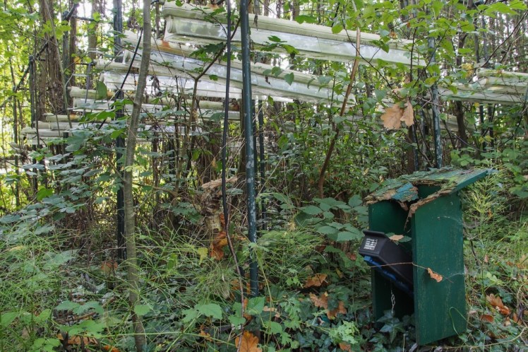 | Nee, geen Oost-Europese vergane glorie maar verlaten veldproeven in Amsterdam (VU-Biologie)Natuur overwoekert natuuronderzoek: bomen kiemen vanzelf, zwammen leven goed van de afbraak (maar ook van die buizen??) |