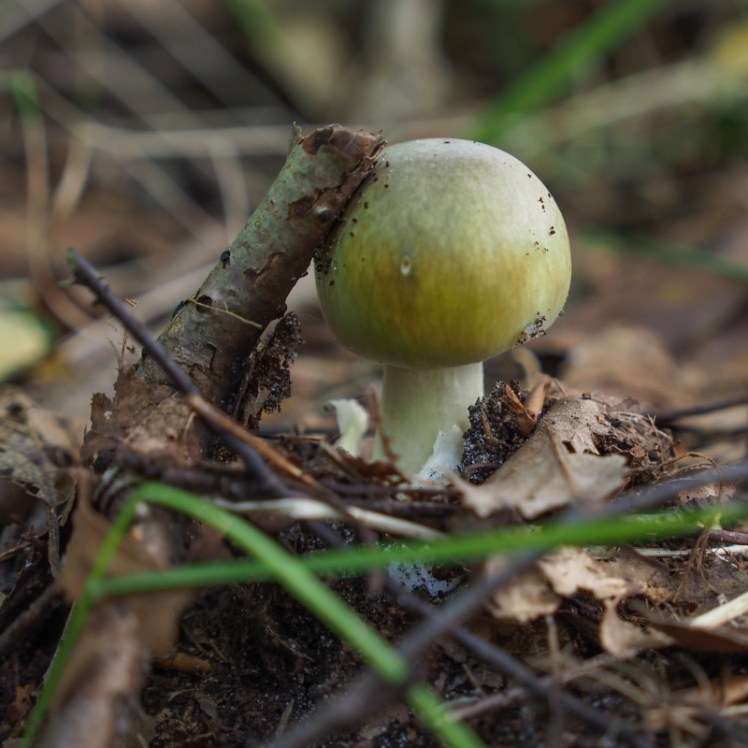 Gekraagde aardster, (piepjonge) Groene knolamaniet.