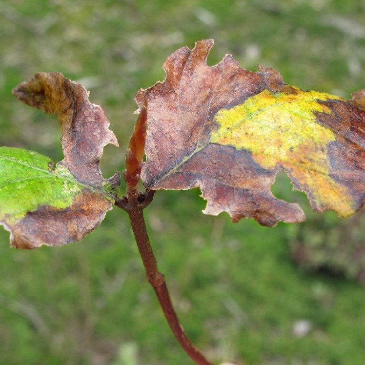 | Gekiemd in het voorjaar werden ze meteen uitgedaagd: vraat, droogte, schimmels, maar ze hebben zich geweerd.Ze zijn geslaagd/winterklaar als ze knoppen hebben kunnen maken voor volgend voorjaar: dan kunnen de blaadjes vallen. |
