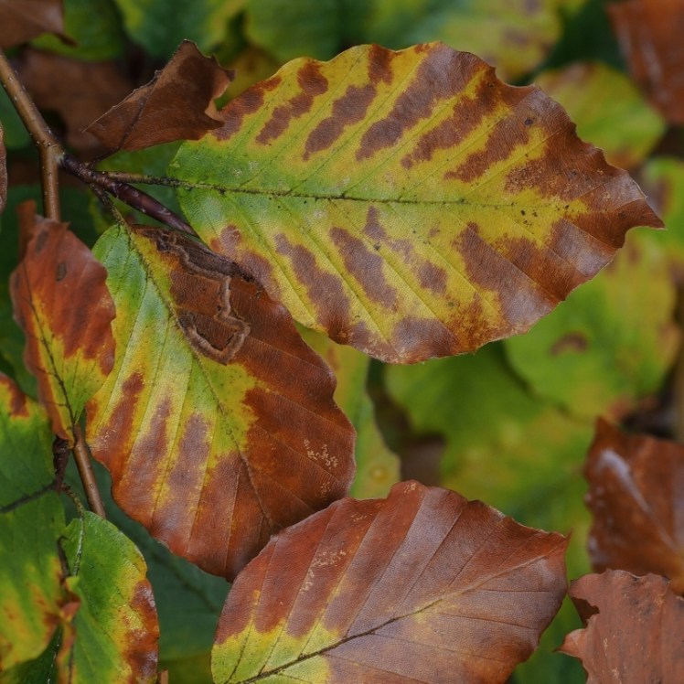 | Niet alleen de babybeukjes (week 45), ook de volwassenen hadden tegenslagen: vraat, droogte, inwoning van mineerrupsjes (de kronkelgangen) maar: waar (blad)groen blijft blijft leven. Nu is het tijd voor afhechten en loslaten, |
