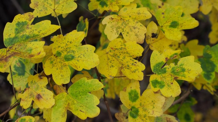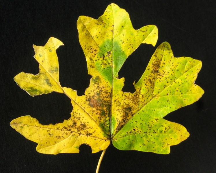 | Groenblijvende vlekken in afhechtend herfstblad? Dat is (biochemisch) nepnieuws van een schimmel: “doorwerken! Hier moet nog gegroeid worden! “Ziek? Ik noem het liever gezond |