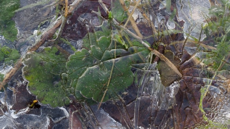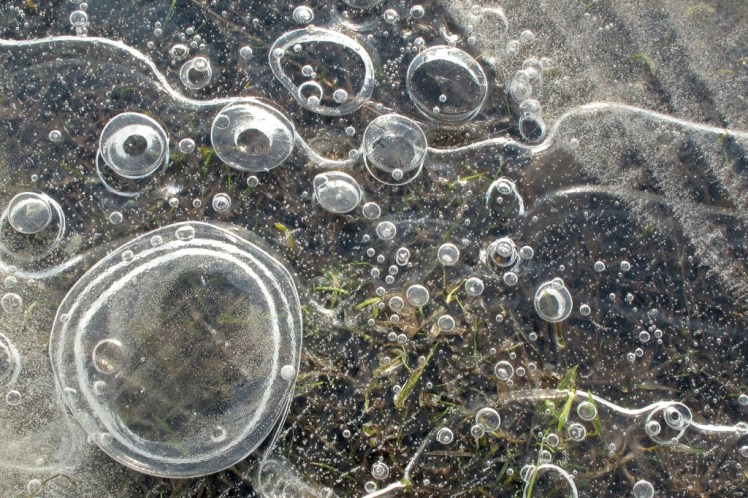 | Nee, schaatsijs is het niet geworden, maar ook met weinig vorst en op kleine plasjes: verrassende ijsstructuren, ingevroren belletjes en groen, voor zolang als het duurt … |