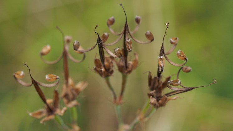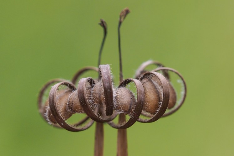 | Beemdooievaarsbek: als de vruchtjes rijp zijn drogen ze los tot vijf slingertjes met elk één zaad om weg te katapulteren, zo ver mogelijk |