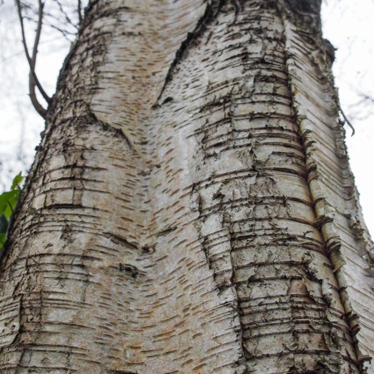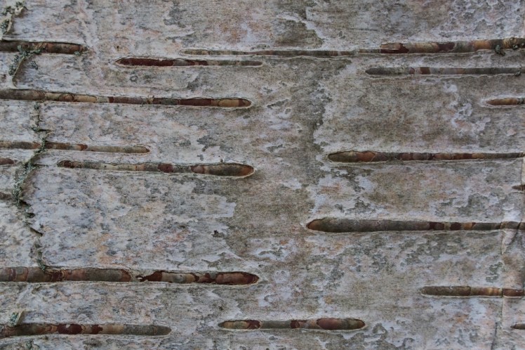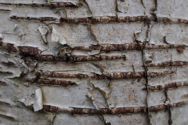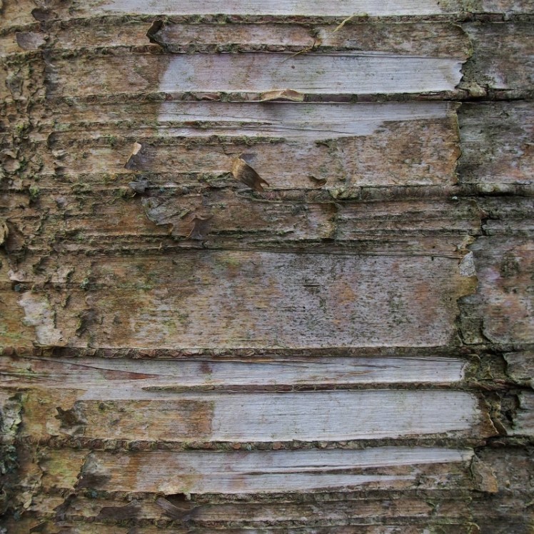 | Berkenbast wit?? Met zoveel kleuren! De buitenste bast bladdert af voor de nieuwe ruimere ‘huid’ en de ademspleetjes (lenticellen) blijven kleurig open, winter en zomer, lente en herfst. |