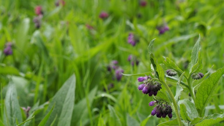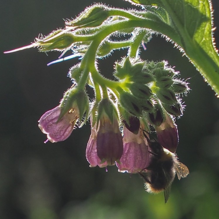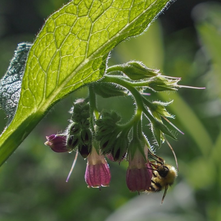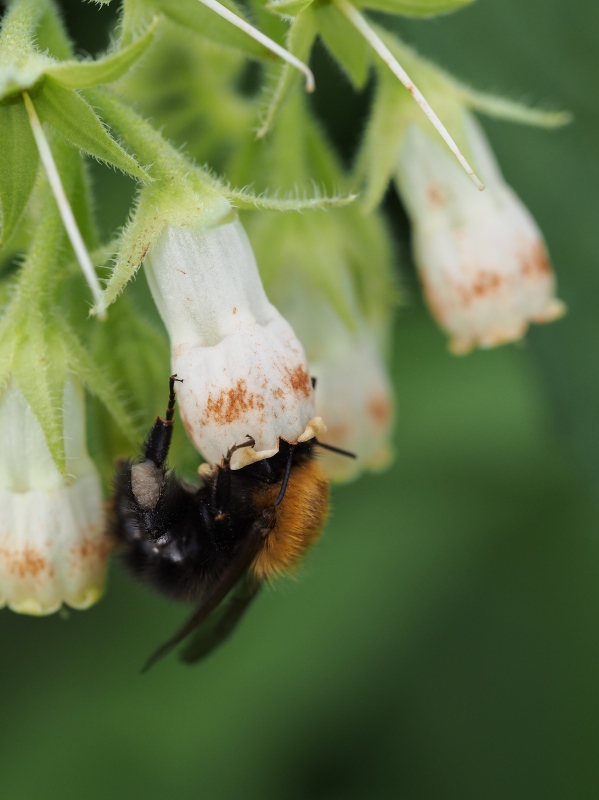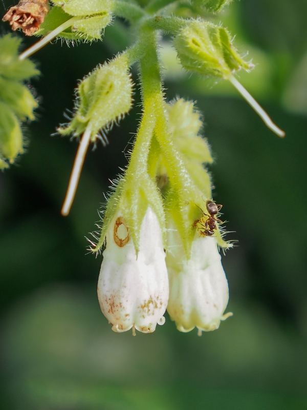 | Zo’n smalle bloem moet je hoog inkunnen voor de nectar, met een LANGE tong … Maar anderen breken in: Ook mieren zien daneen kans schoon. Maar eerlijk is het niet: |