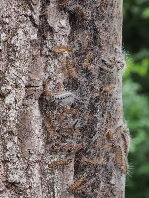 Naam voluit: Eikenprocessierups. De zwart+grijze zijn de levende rupsen, |