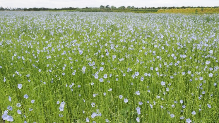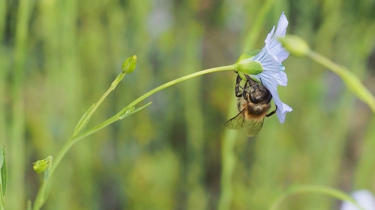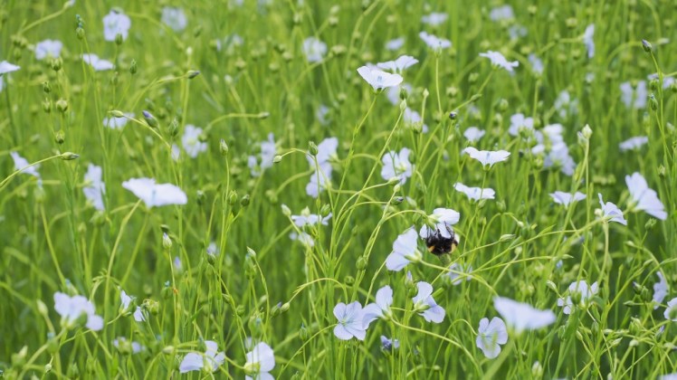 | Een vlasbloem bloeit één ochtend: werk aan de winkel, anders geen lijnzaad, alleen oogst van vezels. Aan zo’n buigzame stengel biedt dan liever insluipen |