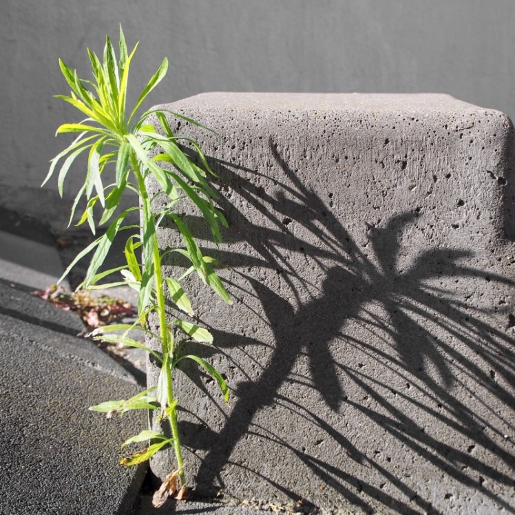 | Strak tekent de felle zon de contouren en overschaduwt alle details. Witte hitte die uitdroogt en zwarte schaduw die koelt |