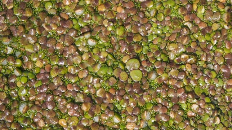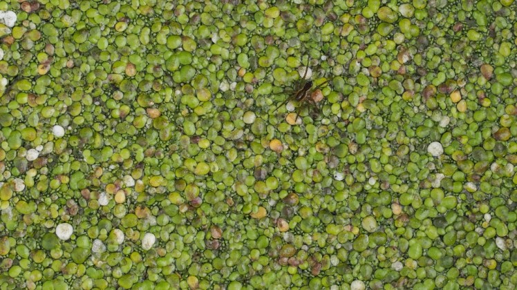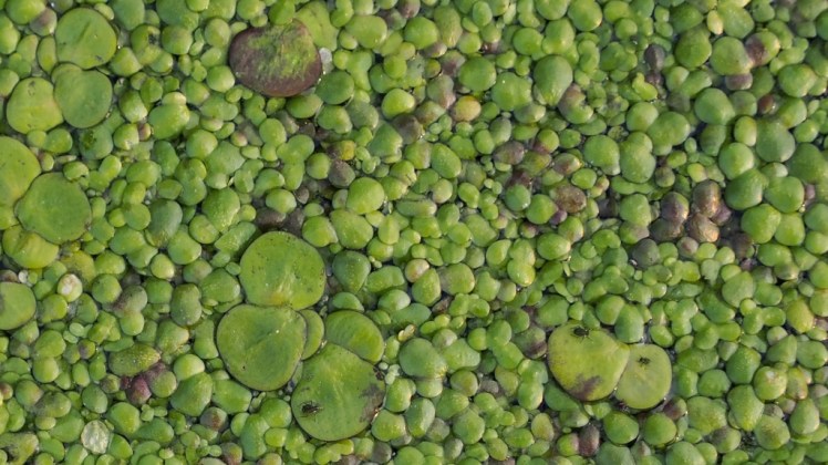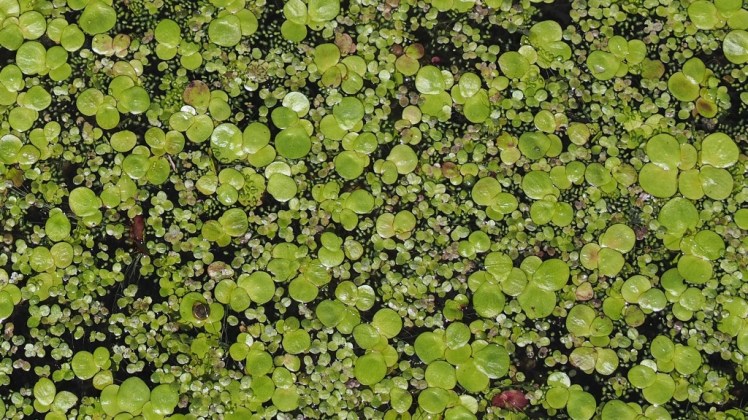 | Miniblaadjes op hun luchtkussentjes drijven samen tot groene tapijten, door wind en watervogels steeds herschikt in wisselende patronen. Even aantrekkelijk voor bladluizen en slakjes als ‘echte’ blaadjes, spinnen en vliegjes kunnen zo over water lopen (en jagen). |