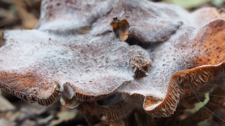 | Als een paddestoel klaar is is er voor collega-schimmels nog heel wat van te eten, en waarom ook niet, als de sporen maar klaar zijn. Of soms toch voortijdig? |