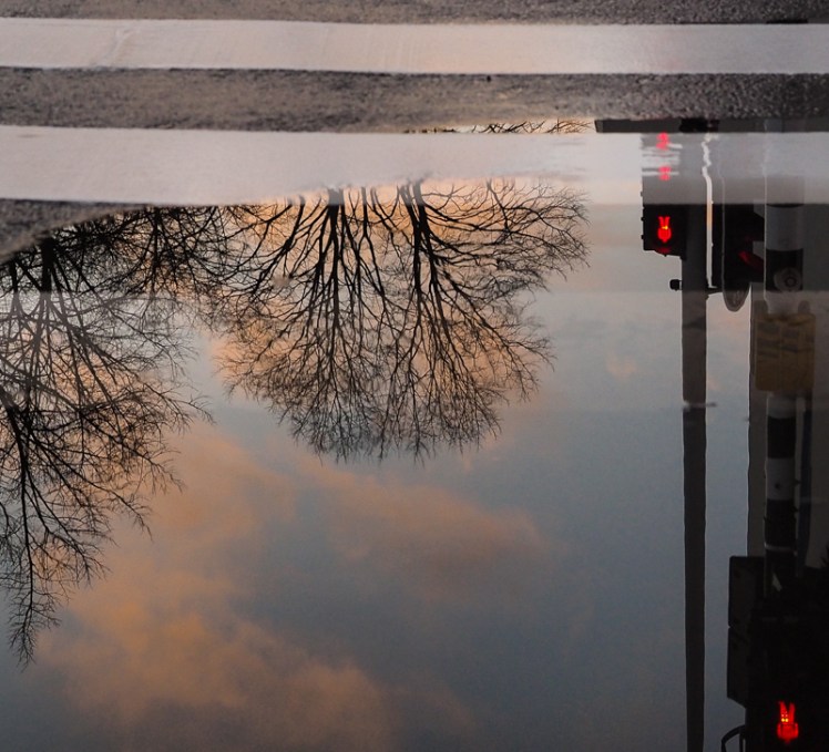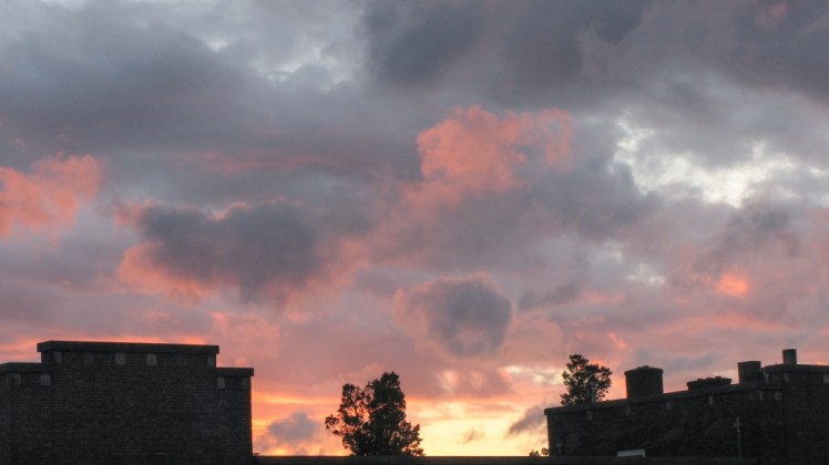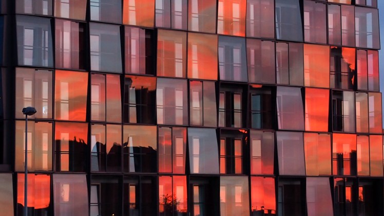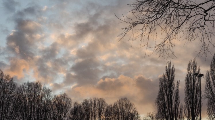 | De kortste dagen met de laagste zon hebben lange zonsondergangen die al vroeg en ver kunnen uitstralen over de stad |