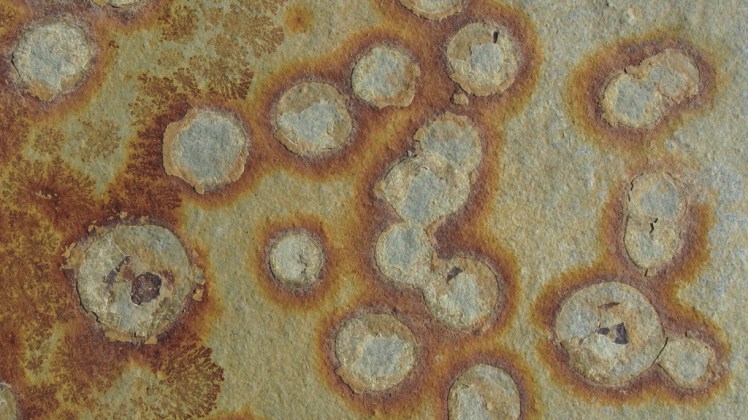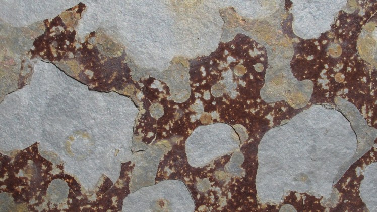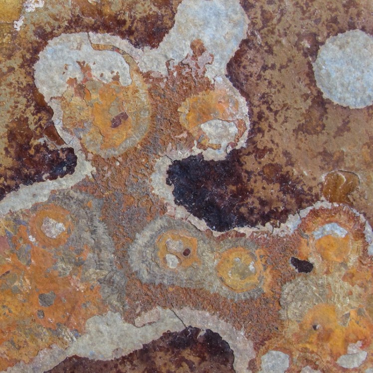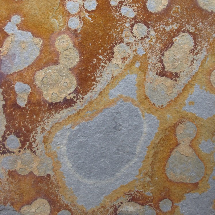 | Die kleuren en patronen, van vers gebroken/gedolven leisteen, sporen van wat zich afspeelde tussen al die gestapelde kleilaagjes. Kleurig in deze wintergrijsheid, voor ze verweren tot leigrijze tinten. |