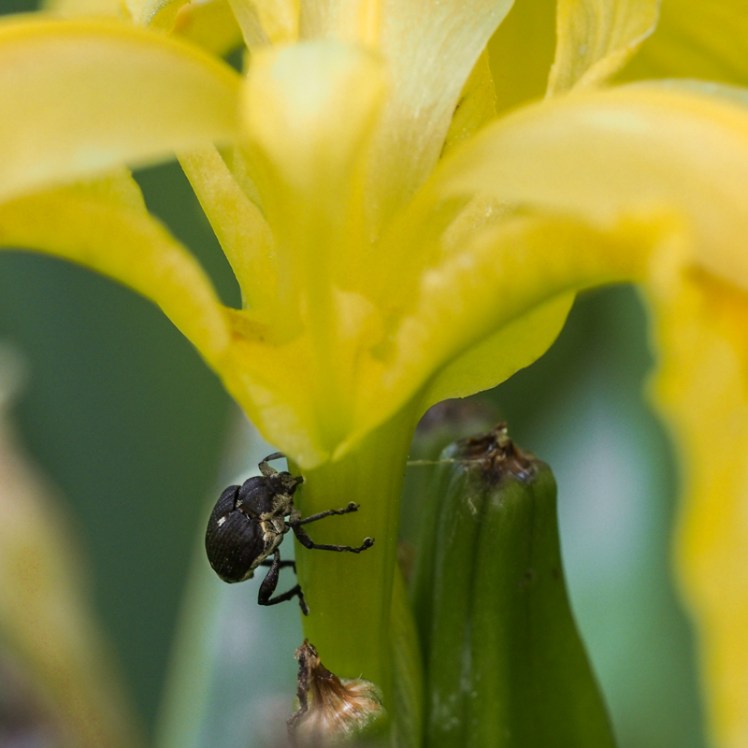 | Nu de lissen bloeien komen ook “hun” lissnuitkevertjes tevoorschijn om hun maaltijden aan te boren: bastsap uit bloemen en stengels. In de vruchtbeginsels zijn straks de zaden prima voedsel voor hun larven. |