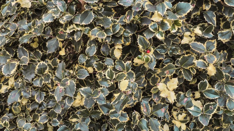 | Bont: zo’n gevlamd patroon is symptoom van een (planten)virus, bladeren maken daar te weinig bladgroen, in grillige/sierlijke vormen. |