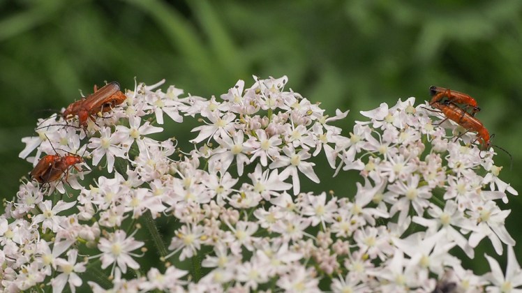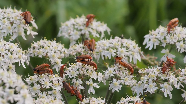 | Massaal zijn de soldaatjes op vrijersvoeten, met voorkeur voor bereklauwbloeischermen als datingplek/huwelijksmarkt. Een orgie van paringen, Gelukkig hoeft hier niets bestreden: |