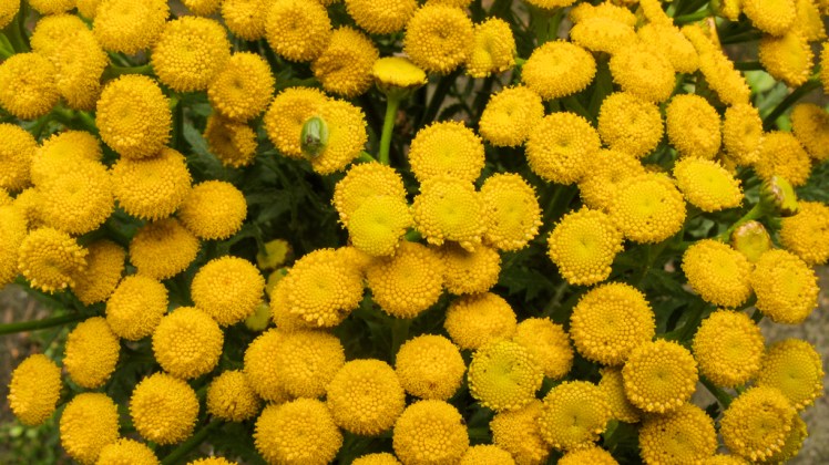 | Zonnebloemen zijn composieten = samengesteldbloemigen, net als madeliefjes, margrieten en bijv. boerenwormkruid (hieronder, zonder lintbloemen). Zoek de aparte bloempjes! |