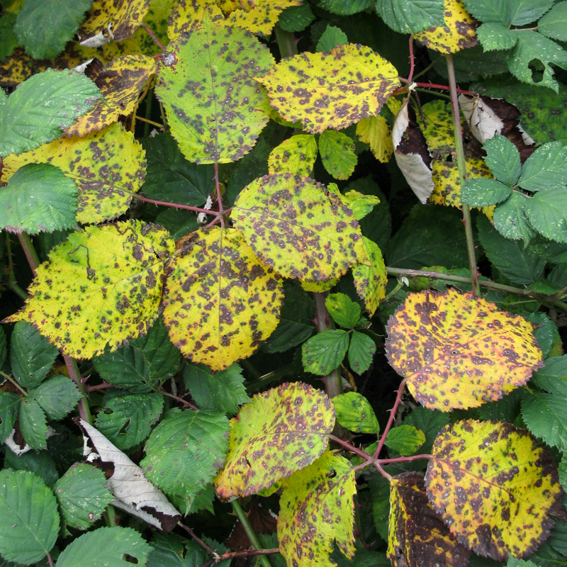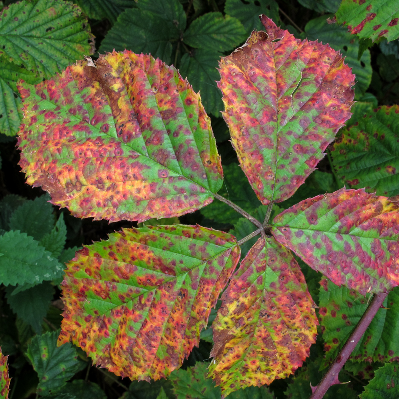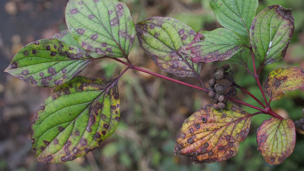Van bovenaf: rode kornoelje, 2x braam, 2x esdoorn