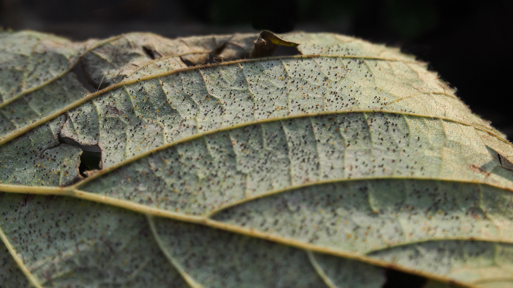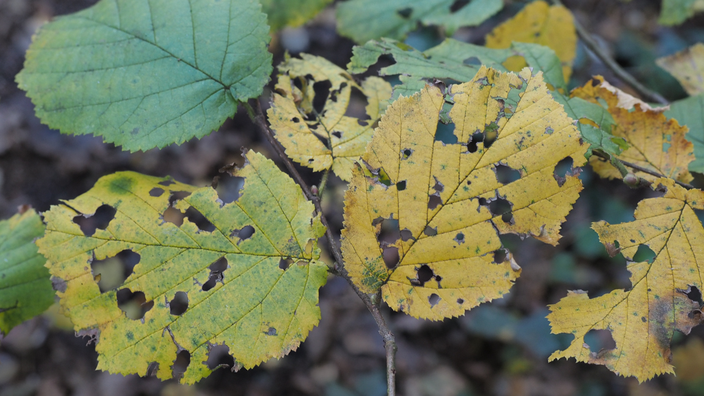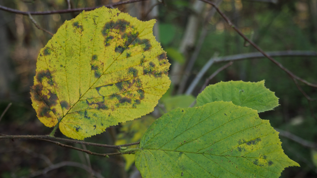 Hazelaarblad weet deze schimmel weinig te kooien (zie week 45)