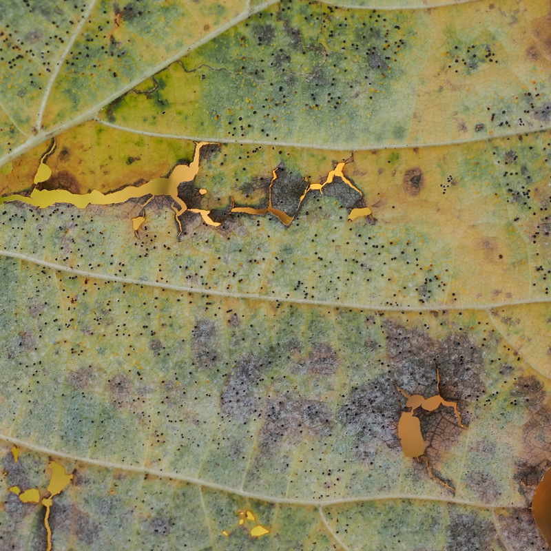 Maar waar de schimmel het blad heeft verleid (met nep-plantenhormoon)