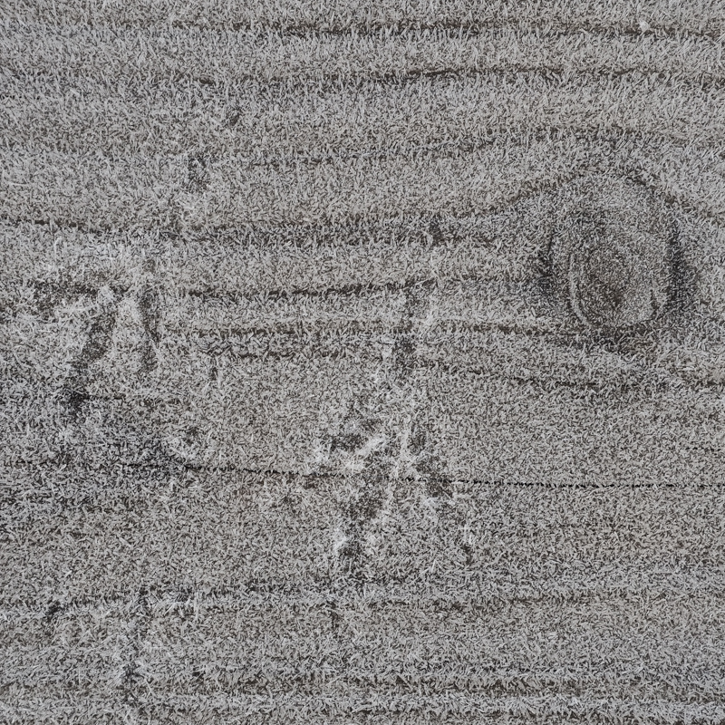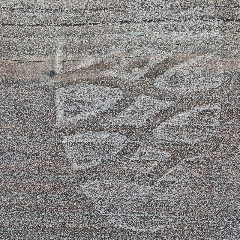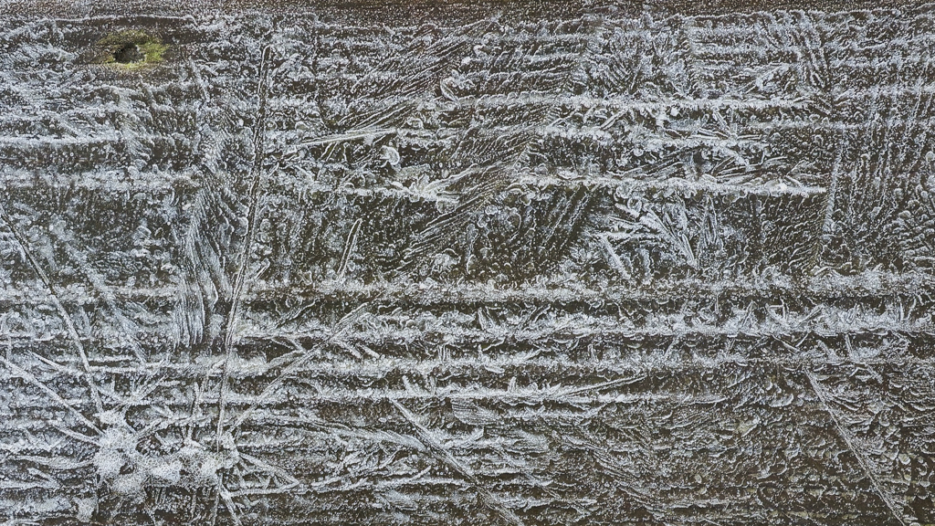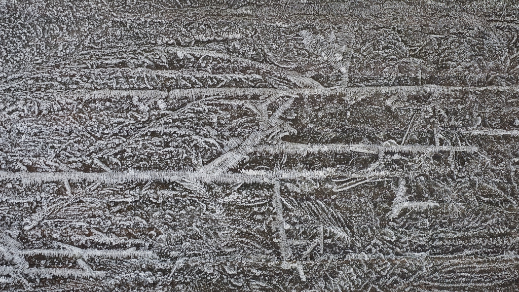 gestapeld tot miljarden staafjes rijp, die de houtstructuren tekenen.
