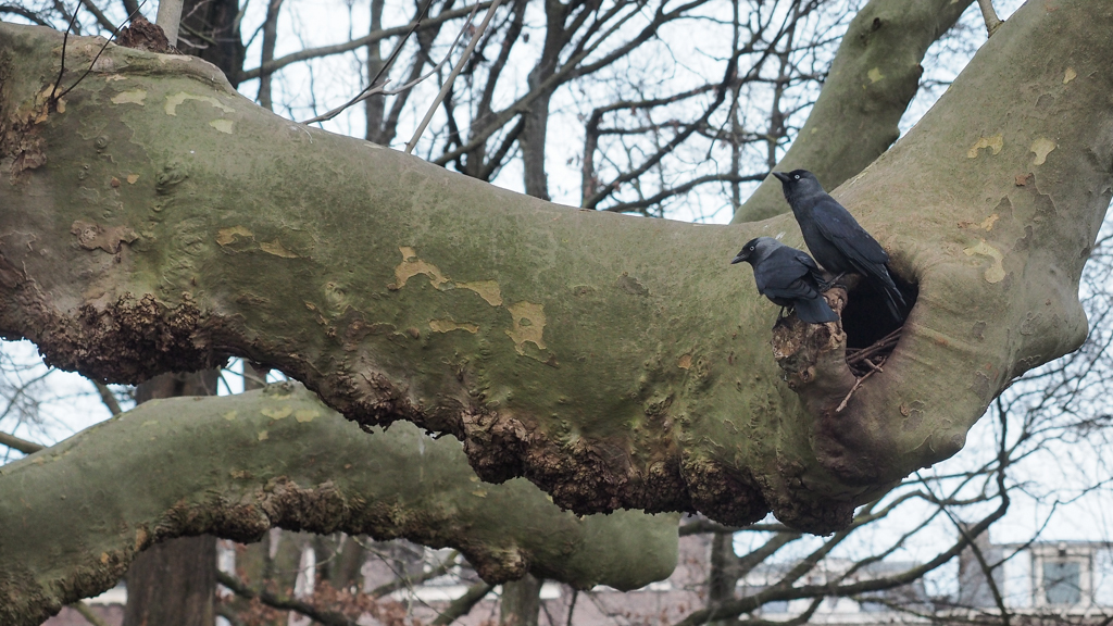 Maar territorium/broedplek krijgen én houden gaat door, de kauwtjes zijn alert!