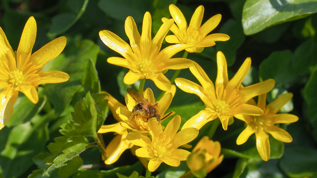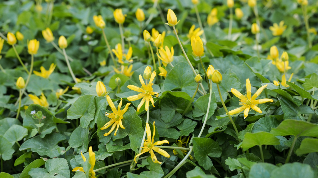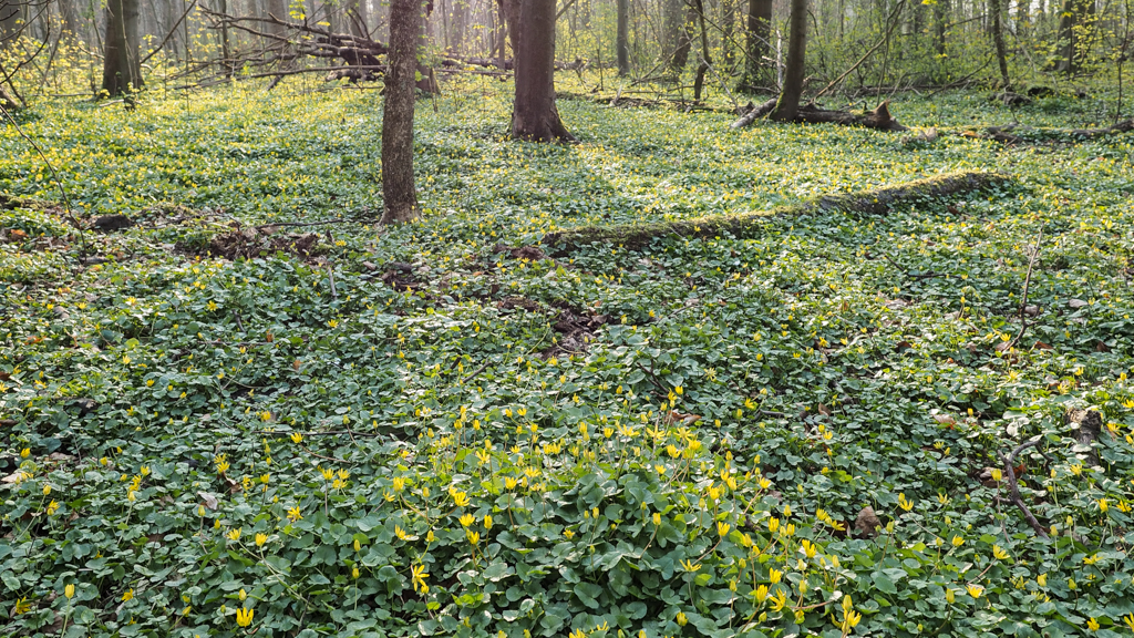Nog steeds bloeit speenkruid, in grote zonnig geel gestippelde tapijten,
