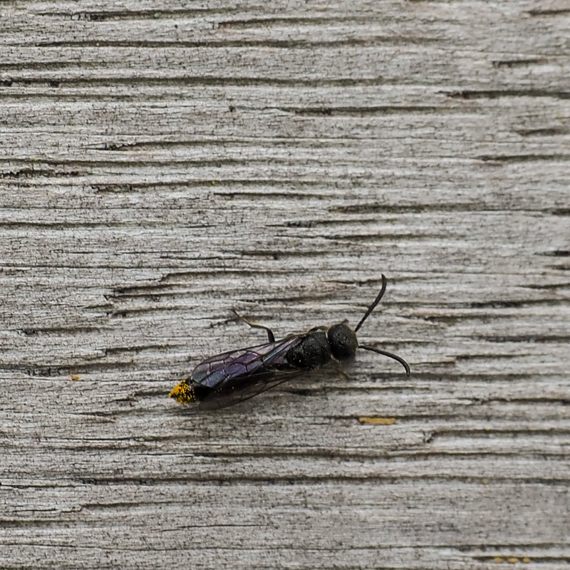 Ze legt haar ei in het goed met stuifmeel gevulde nest van een tronkenbijtje,