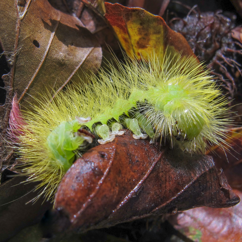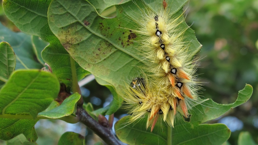 Ook rupsen dreigen graag met een zwart-met-geel wespenpatroon.