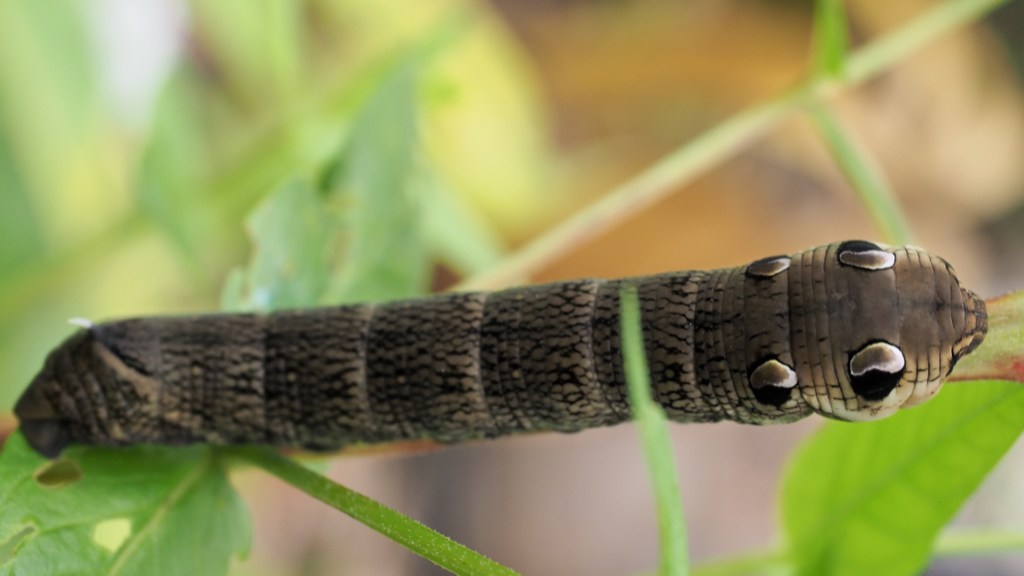 Deze olifantsrups trekt bij gevaar zijn nek + kopje in tot een reuzen”gezicht”