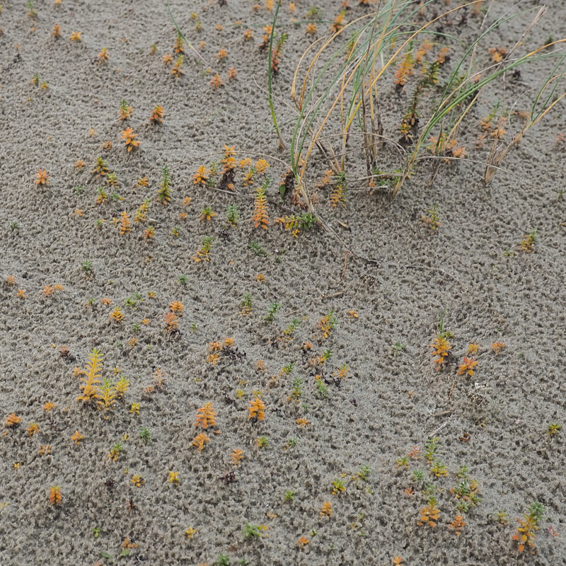 en kruipt/groeit alweer onder een eerder zandbad uit.
