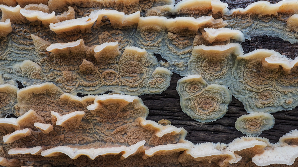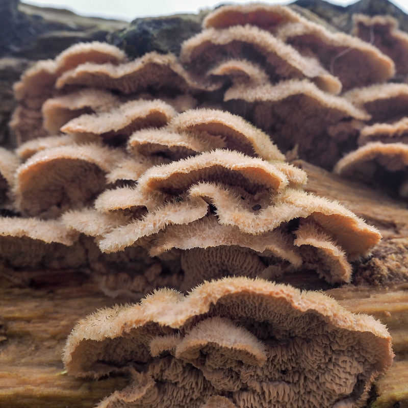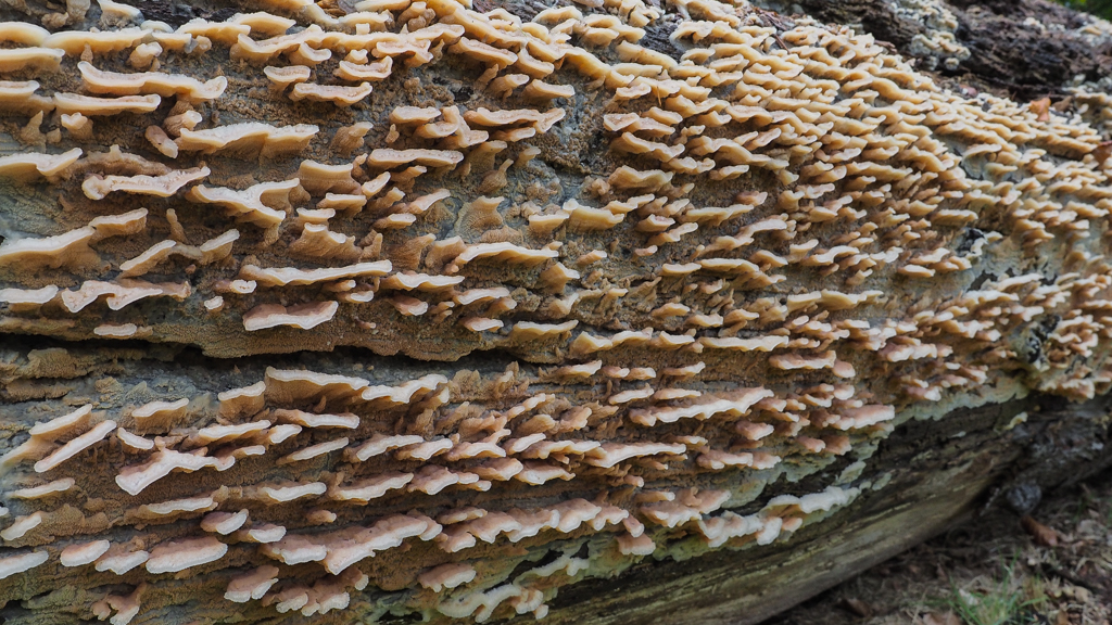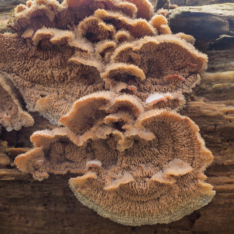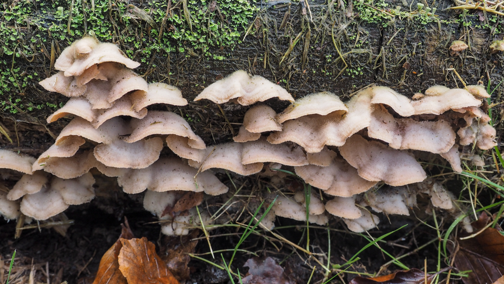 Nu ze vers uit hun vermolmende hout groeien zijn de hoedjes nog klein
