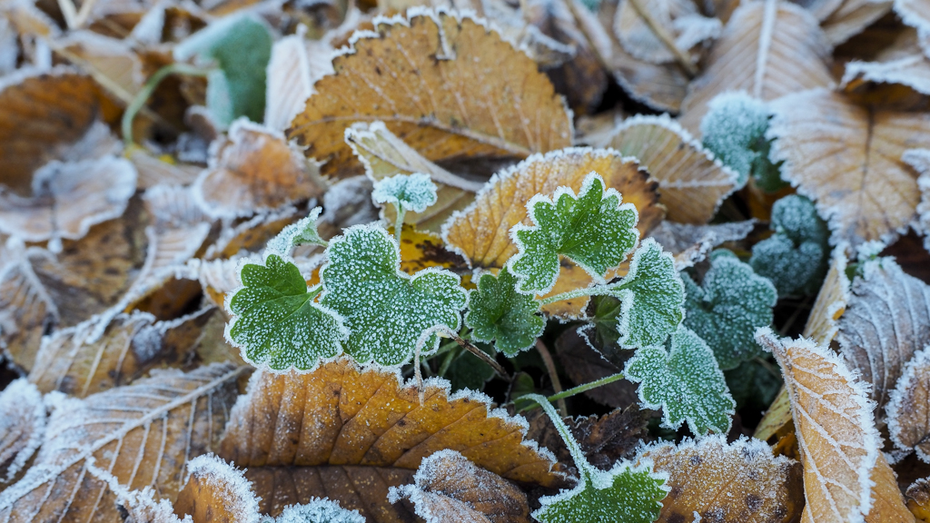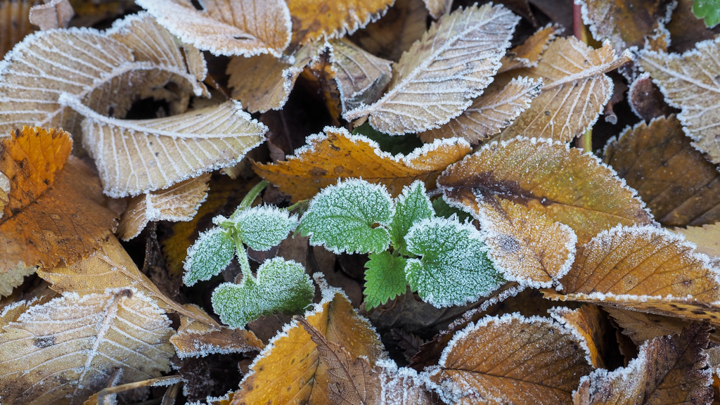 Nog geen beschermende sneeuw, wel tussen gevallen blad: