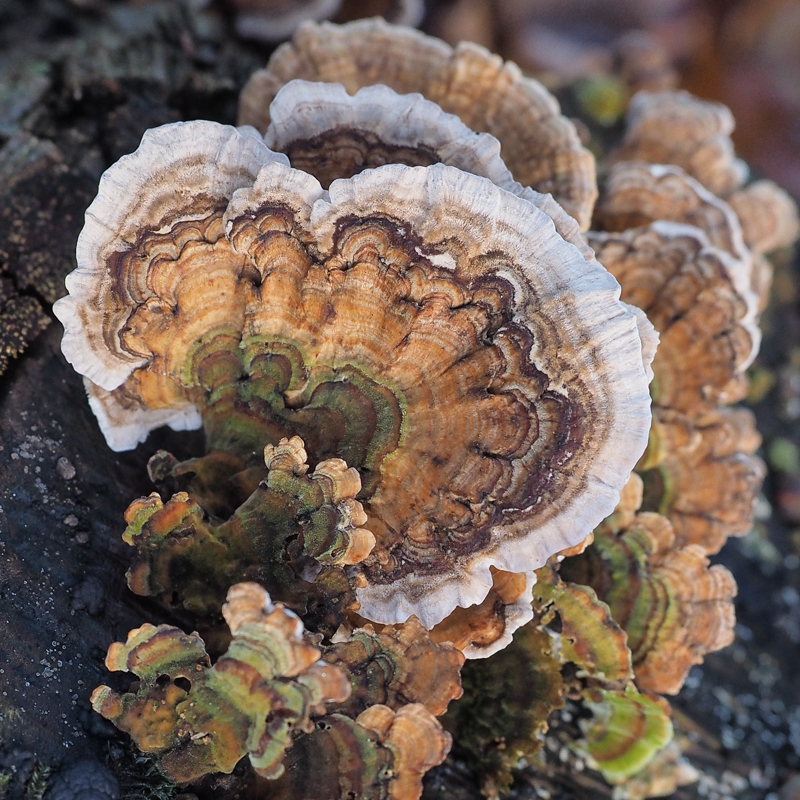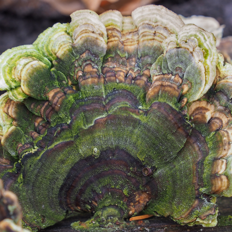 Als het droog genoeg is zie je de fluwelige zachtheid van de schimmel’haartjes’,