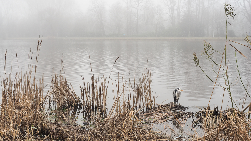 Op hoge blote poten, de ene opgetrokken in je donsjas.