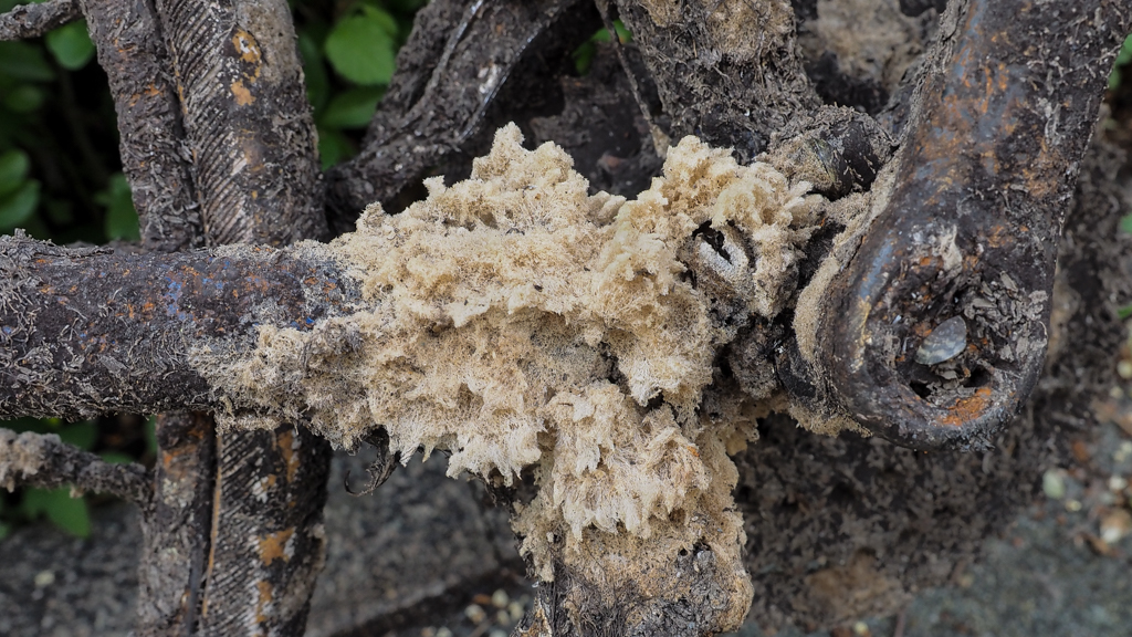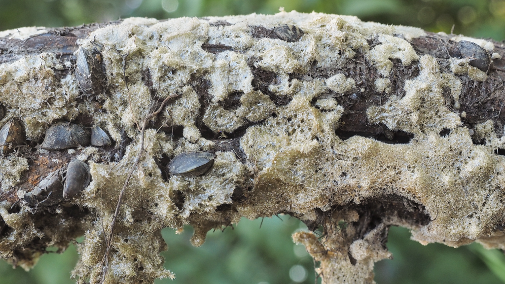 Alleen de “huisjes” van de sponsdiertjes staan er nog, goed vastgehecht