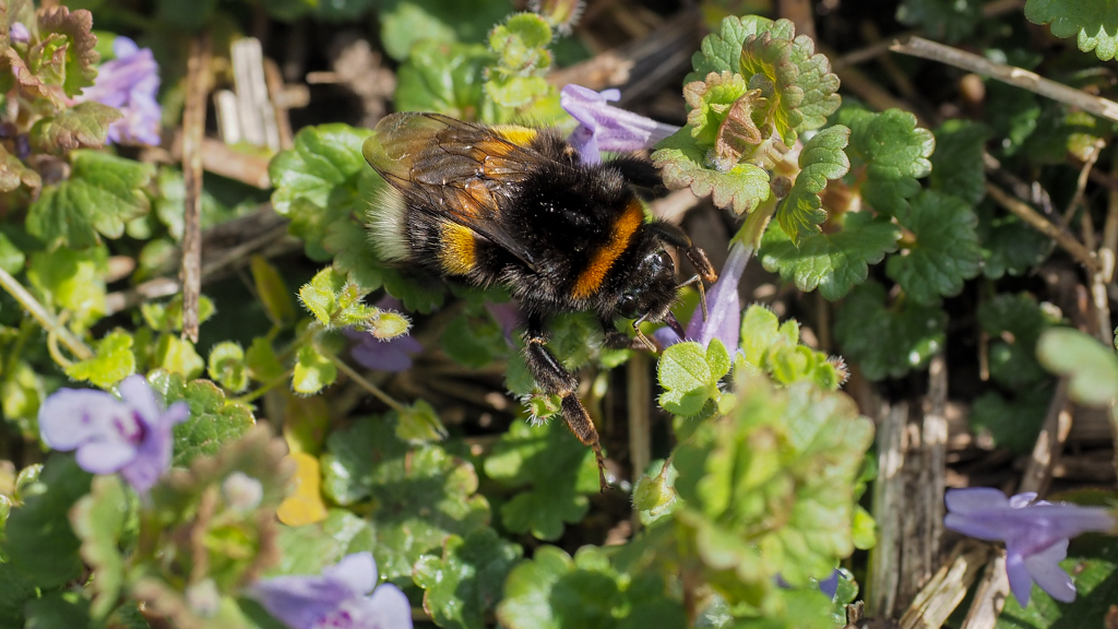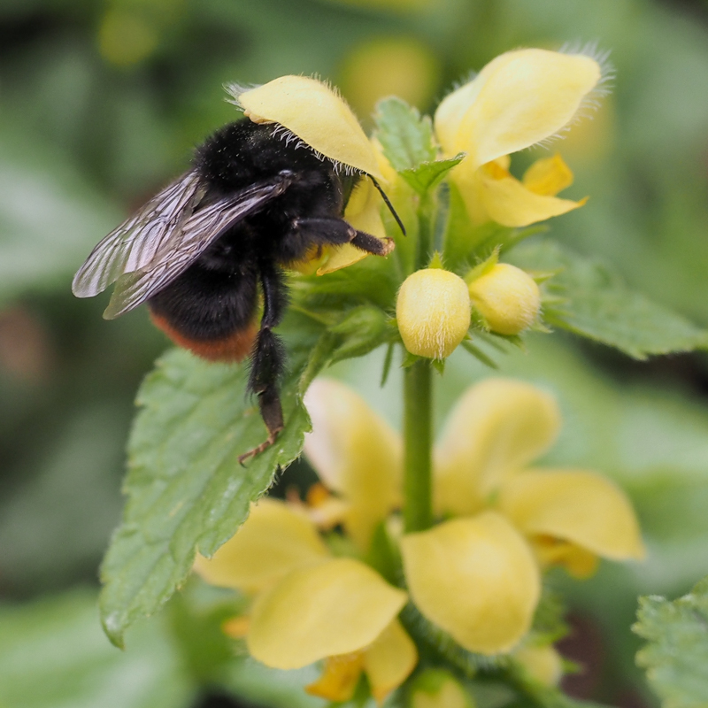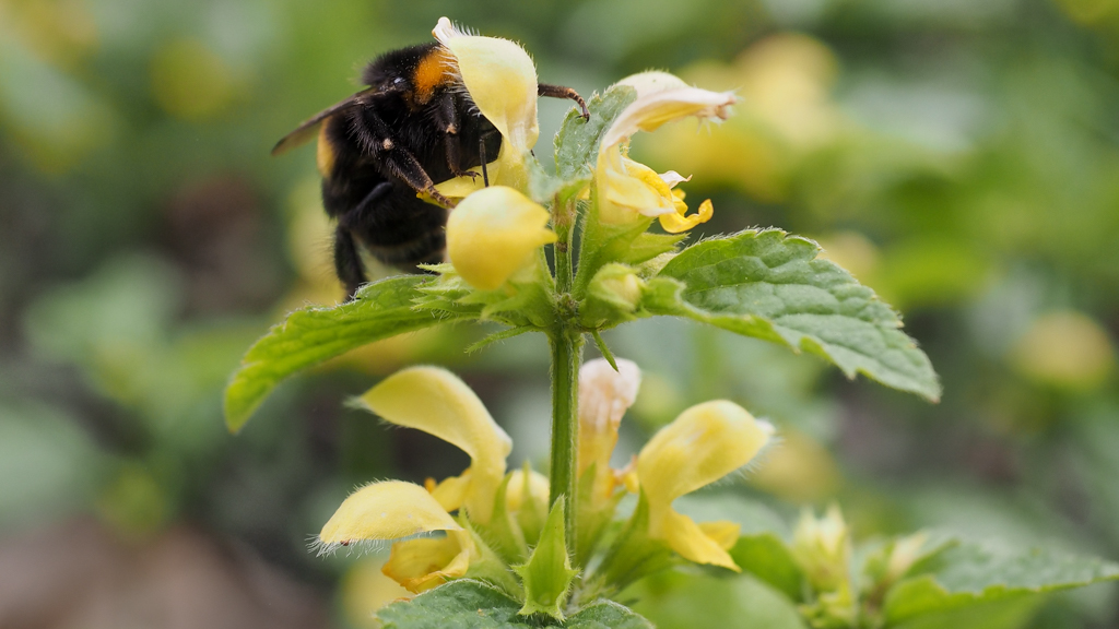 Soorten: aardhommel op gele dovenetel en tussen hondsdraf,