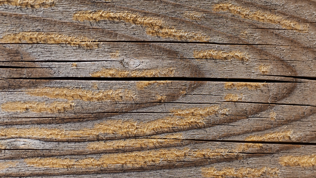 Vers geknaagd hout: van de jaarringen alleen het lichte zachtere lentehout,