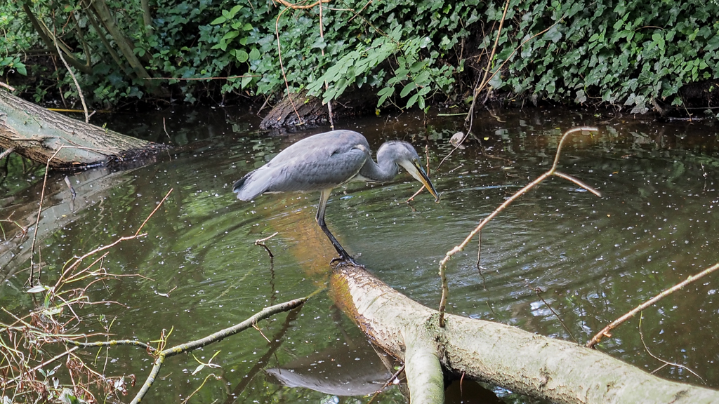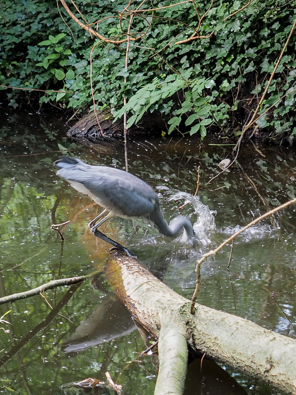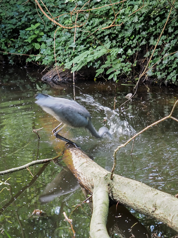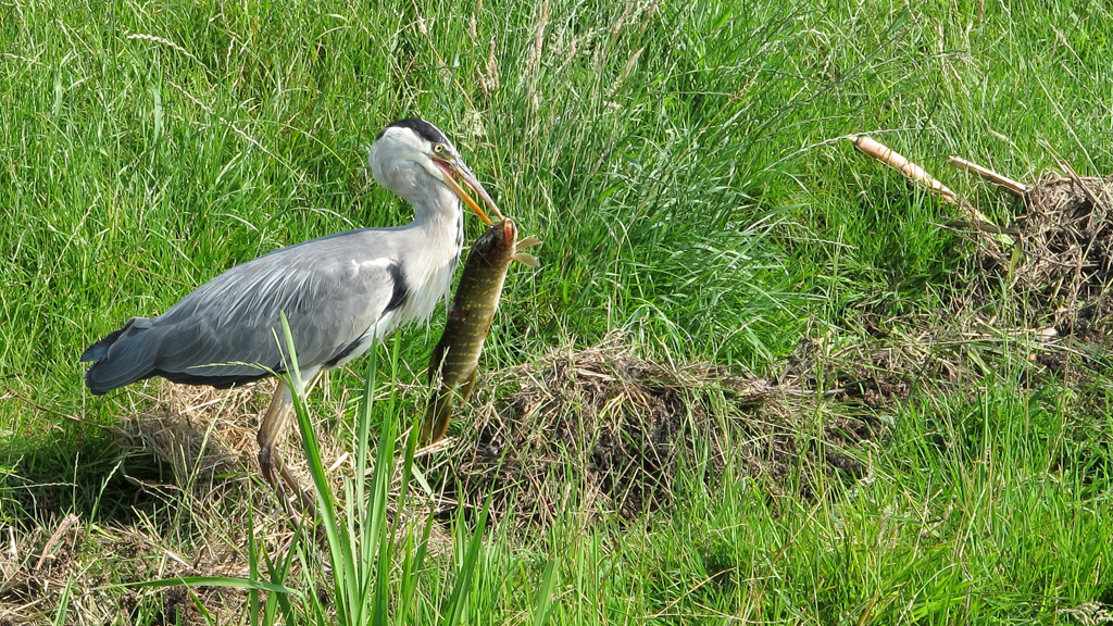 Dan zo’n volwassen reiger met een megavangst, die hij eerst