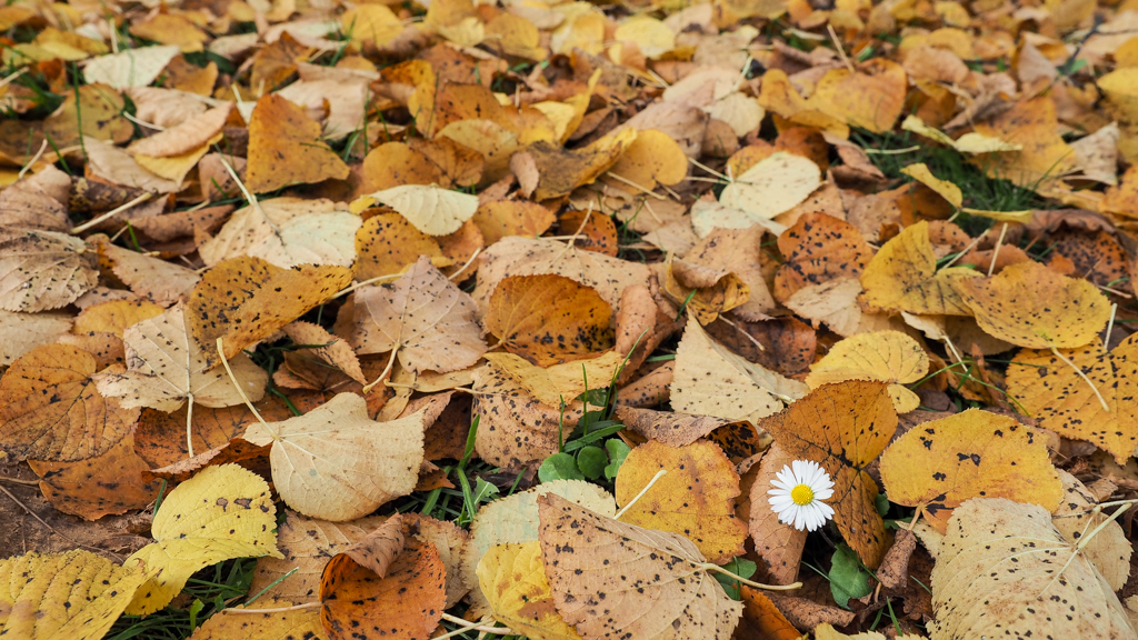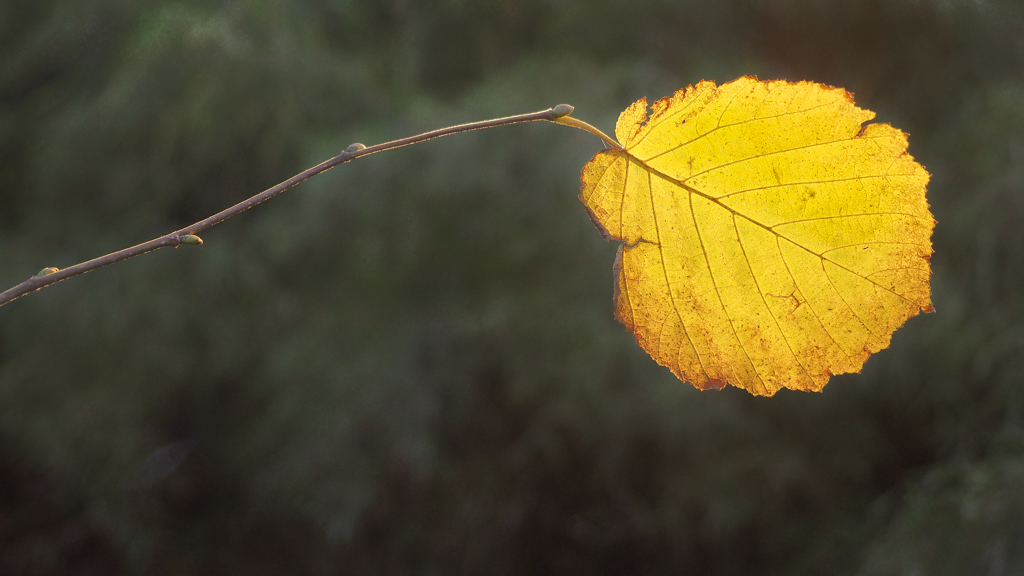 Zo’n laatste, jongste blad lijkt nog te aarzelen om los te laten