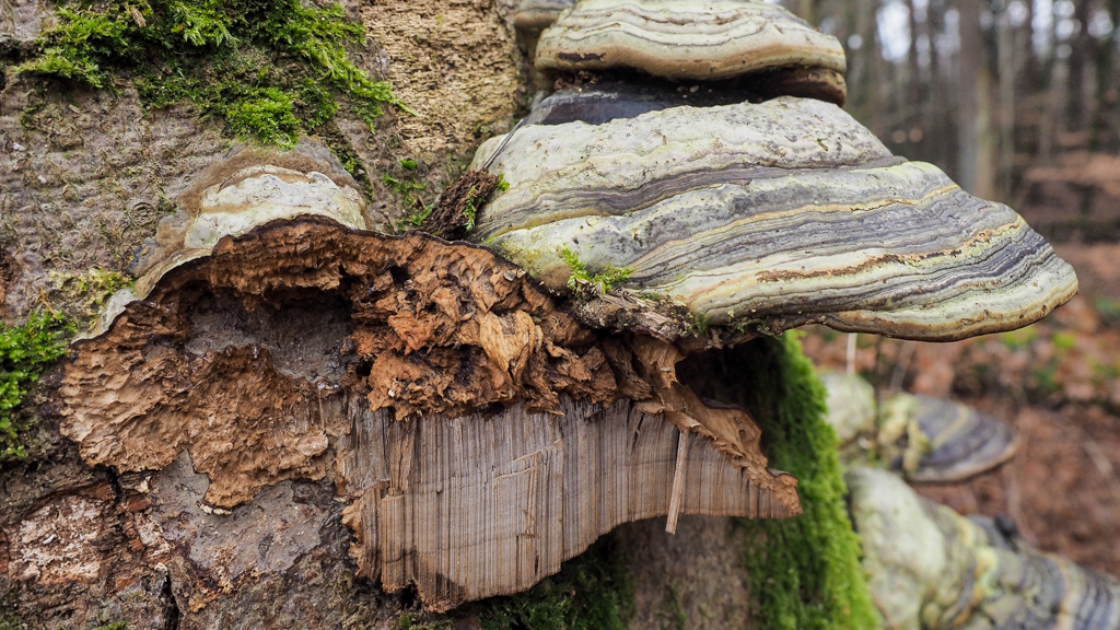jaarlijks een nieuwe ‘verdieping’ groeien: zie hierboven de afgebroken zwam