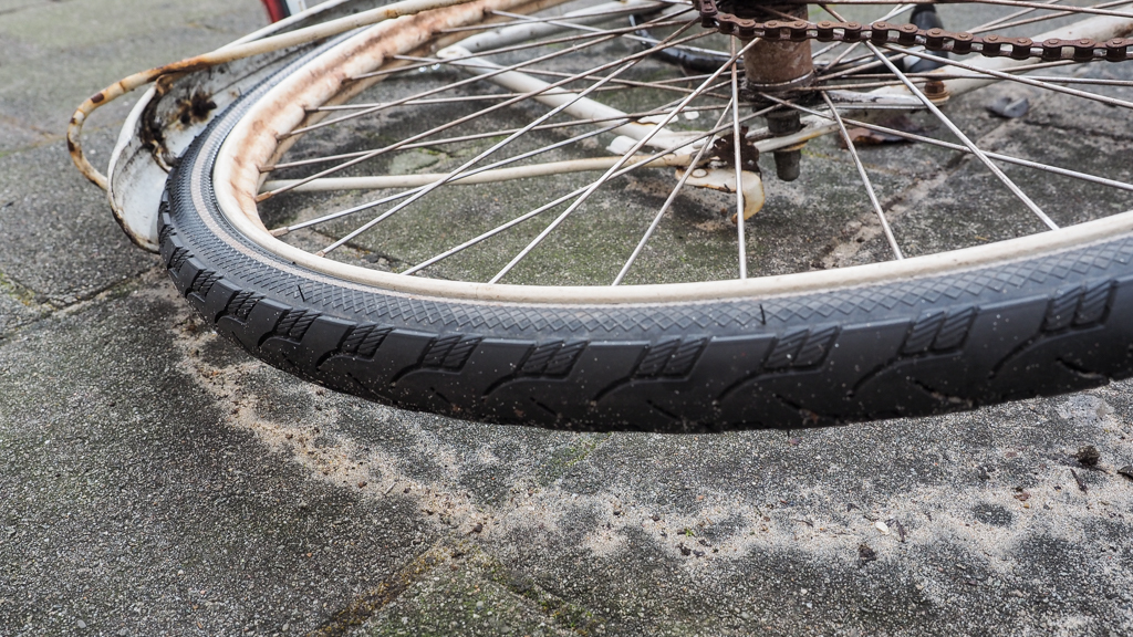 Maar ook het gevallen water kan een fiets haarscherp uittekenen en