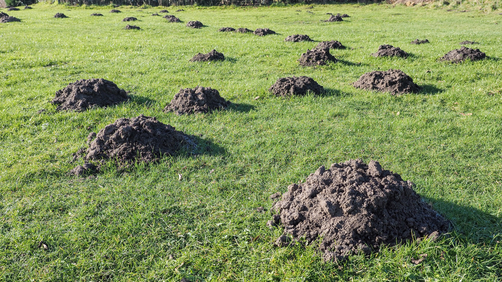 Mollen leven solitair, in hun eigen vanggangen, onder zo’n 40 molshopen pp,
