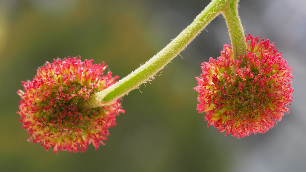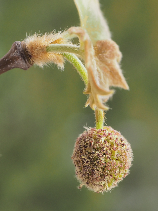 Naast nog twee oude vruchtbollen lopen de nieuwe bloeibolletjes uit,