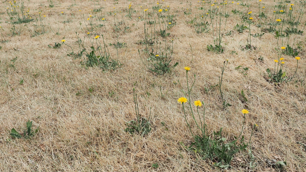 Waar het gras is verdord na een record van regenloze dagen