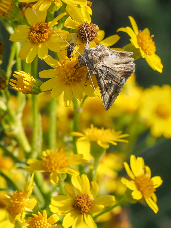 De beestjes: zebrarups, gamma-uil + een vliegje, tronkenbij