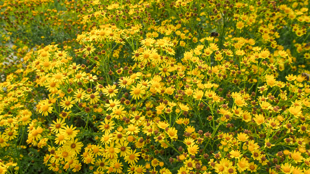 ook vliegjes, wilde bijtjes en zweefvliegen kunnen in de buisbloempjes duiken.
